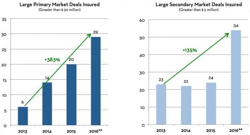 - Banner year in secondary market trading activity in 2016, with 642 policies executed for over $950 million par