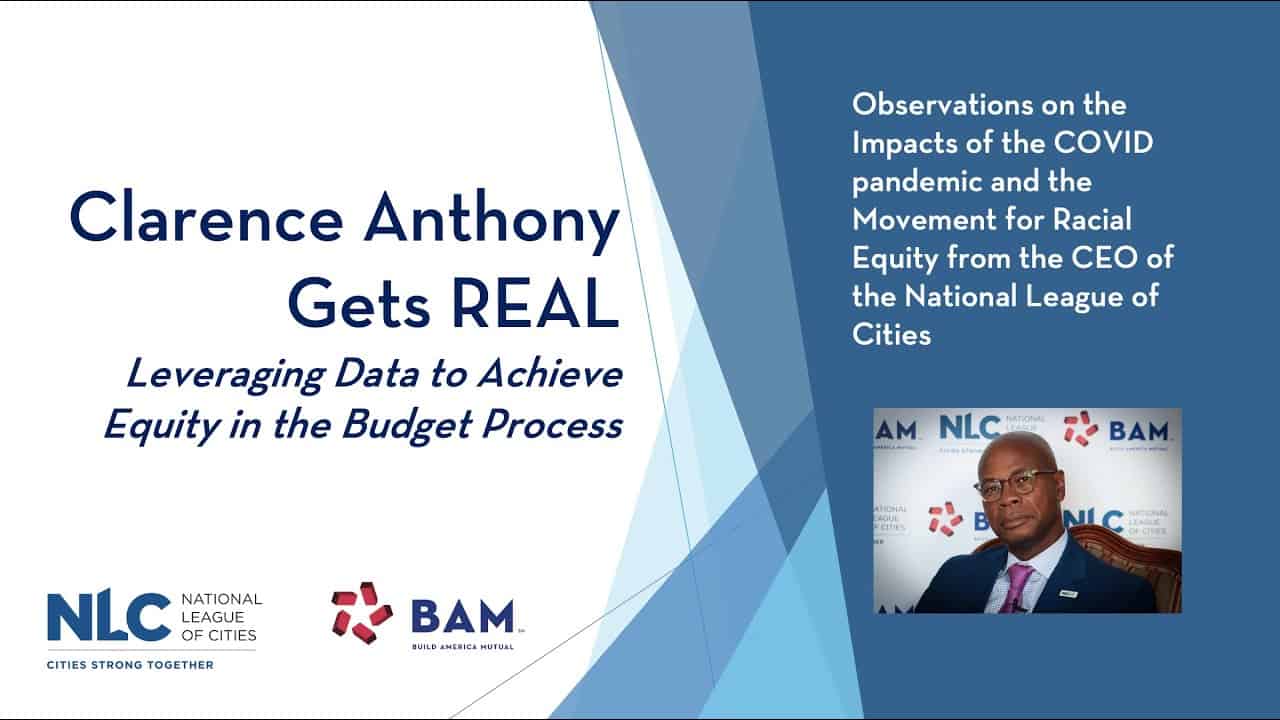 National League of Cities CEO Clarence Anthony discusses the NLC’s Race, Equity, and Leadership (REAL) initiative, which was launched to help local leaders respond to racial inequities in their communities, and highlights how cities’ budget decisions can be important drivers in building more just communities.