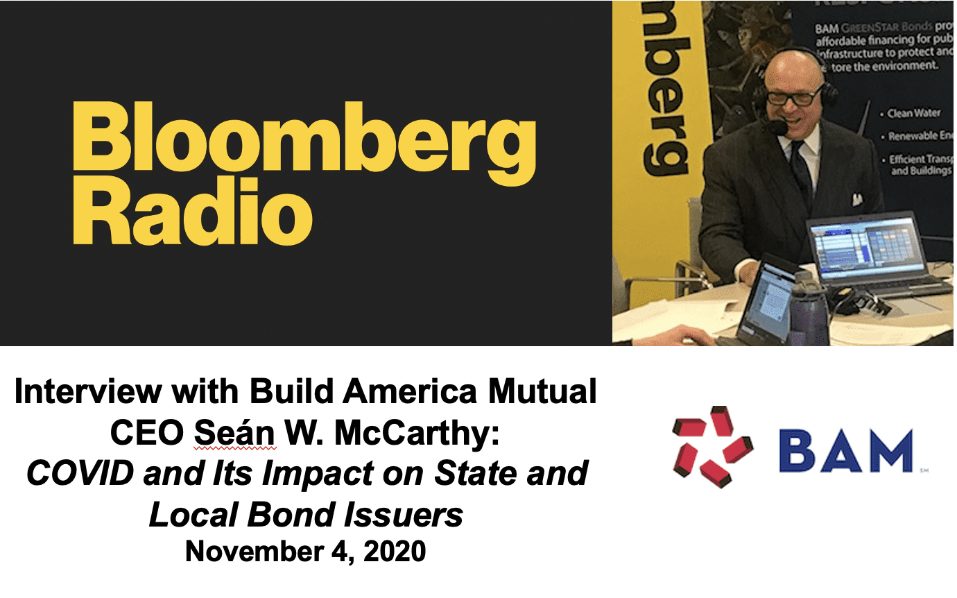 Build America Mutual CEO Sean McCarthy spoke with Bloomberg Radio’s Carol Massar about the strength shown during the COVID pandemic by issuers of bonds for essential services like schools and water utilities.
