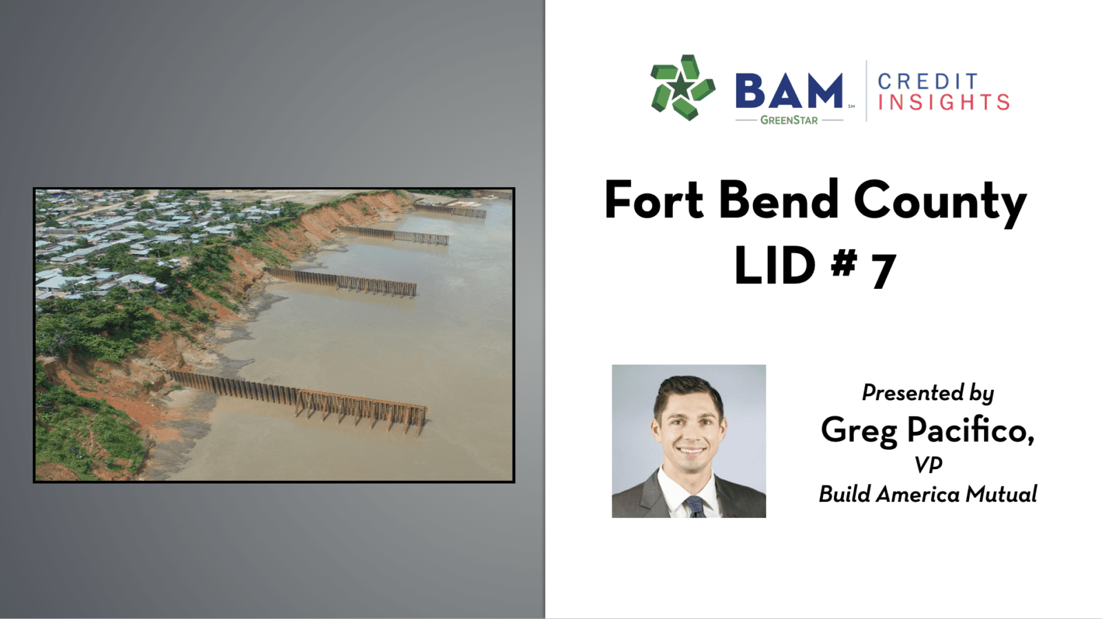 The Fort Bend County Levee Improvement District #7 is selling approximately $60 million of levee improvement revenue bonds to help restore and stabilize the badly eroded bank of the Brazos River bordering the District. BAM’s latest Credit Insights Video discusses the credit securing the bonds and how BAM verified that they align with the ICMA’s Green Bond Principles.