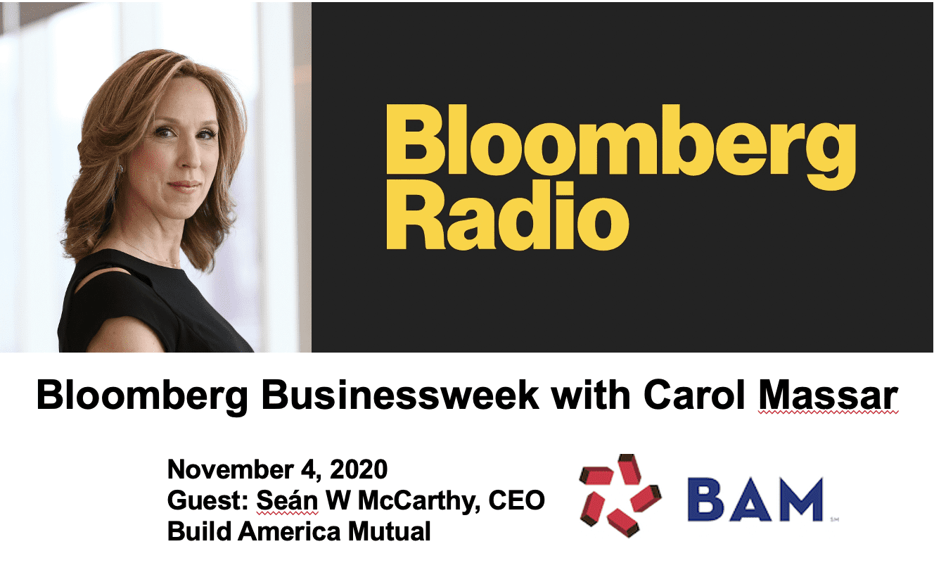 BAM CEO Seán McCarthy discussed the outlook for U.S. infrastructure finance and the implications for municipal bond investors in an interview with Bloomberg Radio host Carol Massar on November 4, 2020.